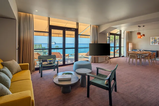 Just outside Cannes, the Canopy by Hilton offers its guests a one-of-a-kind chic and relaxing experience. Featuring 110 rooms, 19 suites and 12 apartments, the hotel stands apart for its contemporary and soothing atmosphere, combining bright decor in shades of beige, red and orange with a modular design. At Canopy by Hilton, art subtly invites itself into every space with a collection of original works created by emerging artists that turn each stay here into an immersion at the heart of a live exhibition. As for the culinary experience, starting with breakfast, Café Crème offers a sweet and savoury gourmet menu in a Californian atmosphere. At sunset, head to the rooftop with its stunning views of the Lérins Islands and Estérel mountains, and the Restaurant & Bar Marea to discover delicious cocktails and the creative cuisine of Chef Alexander Burger. A distinctly refined address ideal for savouring to the full the art of living on the French Riviera.