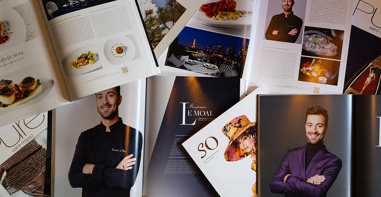 Cet hiver, le Chef Privé Benjamin Le Moal signe de nouveaux instants culinaires d’exception au cœur des plus belles stations. Riche d’expériences auprès de maisons étoilées, il célèbre l’art de recevoir avec élégance et authenticité. Sa cuisine célèbre le plaisir du partage, le respect du produit et la générosité du geste. Chaque repas devient un moment d’émotion, une expérience intime et raffinée où l’univers de la haute gastronomie se mêle à la chaleur humaine. Tout particulièrement à l’écoute des goûts, des exigences et des cultures de ses hôtes, Benjamin Le Moal compose des menus sur mesure, orchestre le service dans le plus grand respect des arts de la table, pour que chaque détail reflète le plaisir du beau et du bon. Cet hiver, vivez la gastronomie autrement, intime et raffinée, dans la douceur d’un chalet enneigé. Et toute l’année, en France comme à l’international, le Chef met sa signature et son sens du détail au service de vos plus belles tables, où que vous soyez.